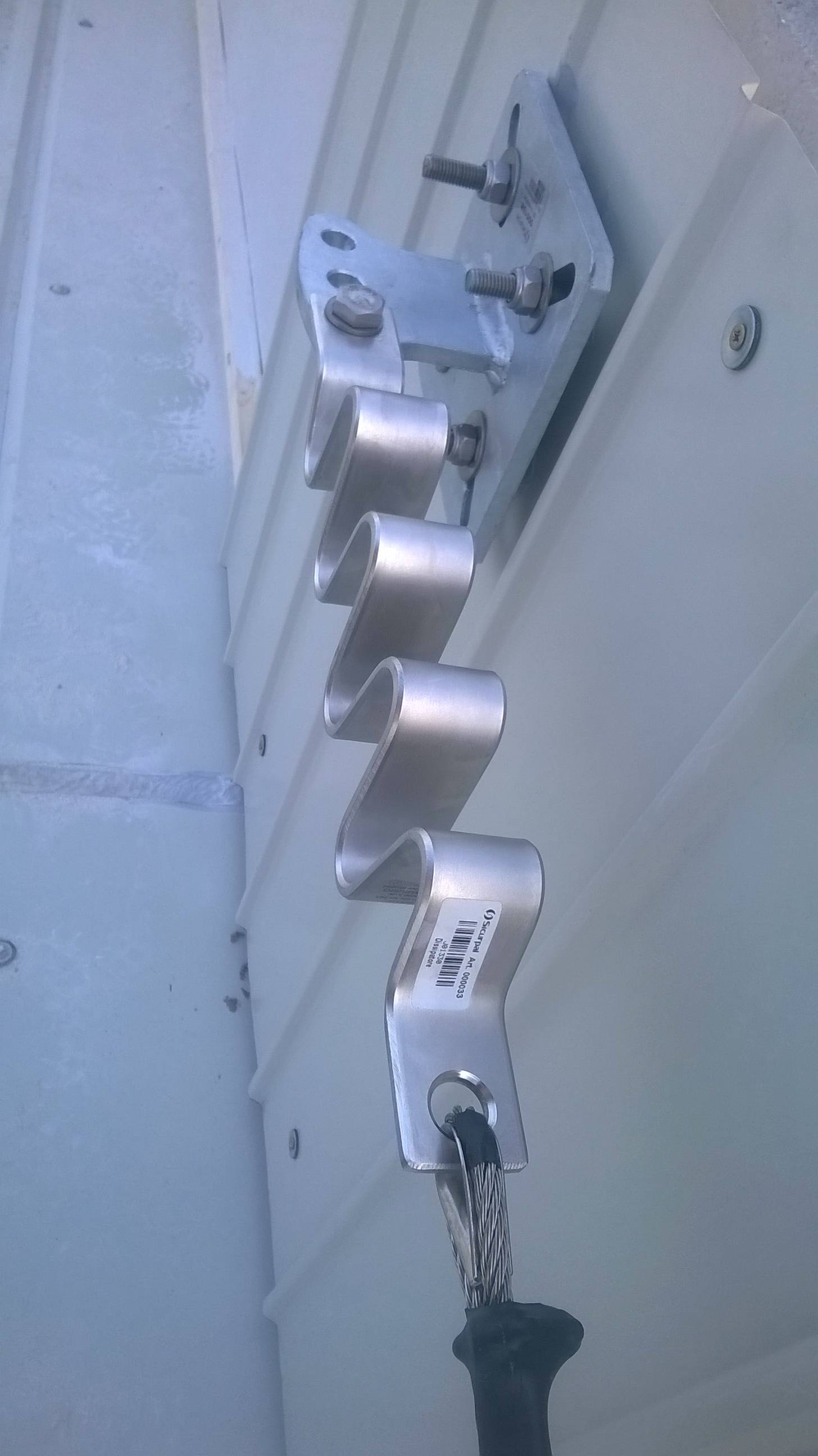 Campomarino (CB) – Stabilimento Industriale L’impianto è costituito da due linee vita di classe C UNI EN 795 a parete realizzata con piastre di ancoraggio SZP fissate sulla muratura mediante barre filettate ed ancorante chimico.